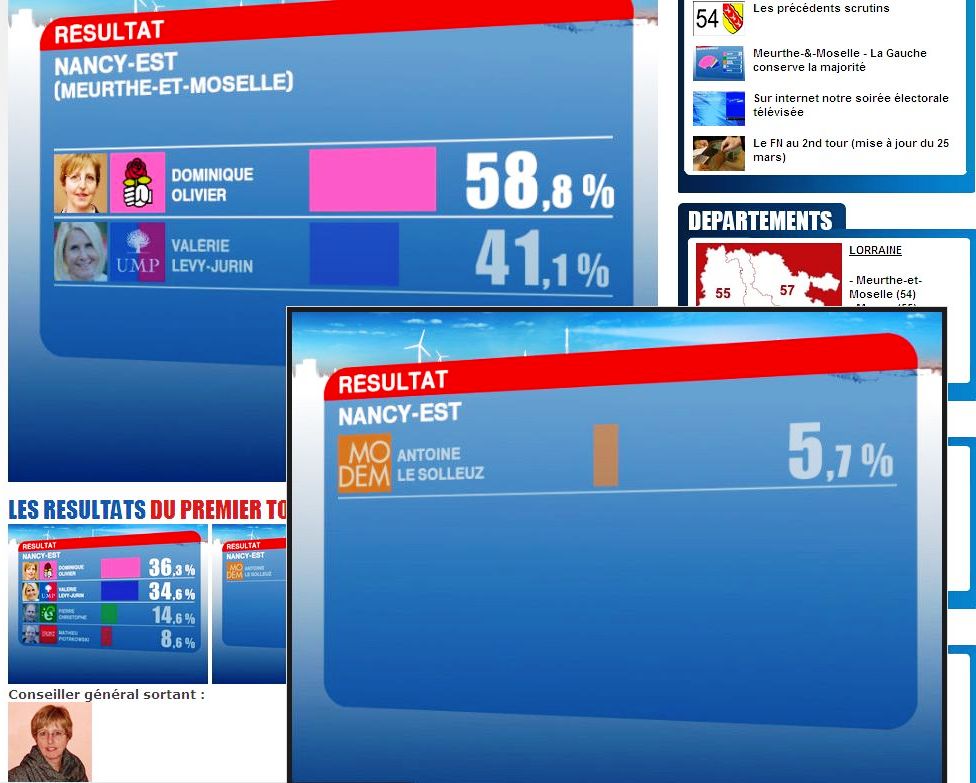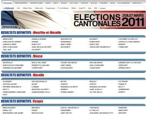 La Home du site "cantonales Lorraine 2011" au soir du 2nd tour