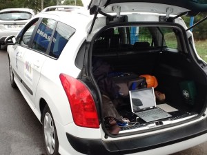 Tout seul, avec un PC portable, un iPhone, un iPad équipé d’une coque étanche et solide et un transformateur 12V/220V (branché sur l’allume-cigare). Et David en base arrière pour m’assurer en cas de soucis.
