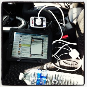 Forte réactivité par tweet, ma bonne connaissance du dossier et des acteurs qui permet de faire des photos et de choisir des séquences vidéos pertinentes, le transformateur dans la voiture m’autorisant une charge régulière de l’iPad et de l’iPhone et le maintien en charge du PC portable, la housse sécurisée de l’iPad permettant de travailler même sous une très forte pluie.