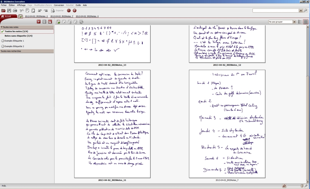 J’ai fait mes quatre pages d’écriture et celle-ci a été reconnu à 96%, de sorte que le résultat final en terme de restitution de ma prise de notes s’avère plutôt efficace, aussi bien sur le PC sur lequel est installé la série logicielle accompagnant l’outil (attention, code valable sur un seul PC) que sur l’iPad (spécificité de la gamme exécutive 2).